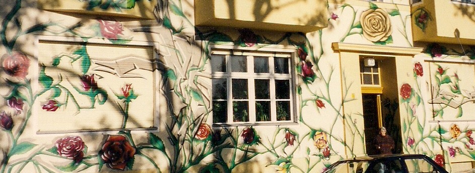 Wegen des auffälligen Graffitis wird unser Haus auch als „Rosenhaus“ bezeichnet.